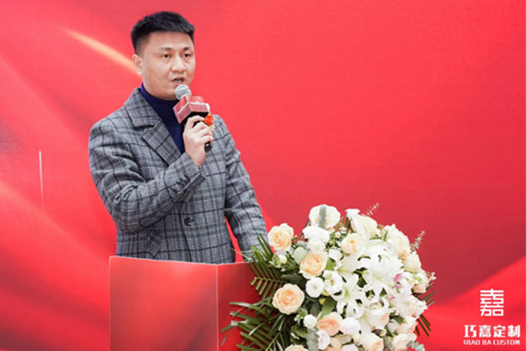 贵州巧嘉木业科技有限公司董事长翁波先生上台致辞,称:“在瞬息万变的时代,巧嘉希望和大家携手合作,共创未来,取长补短,真正实现多元化快速发展。”